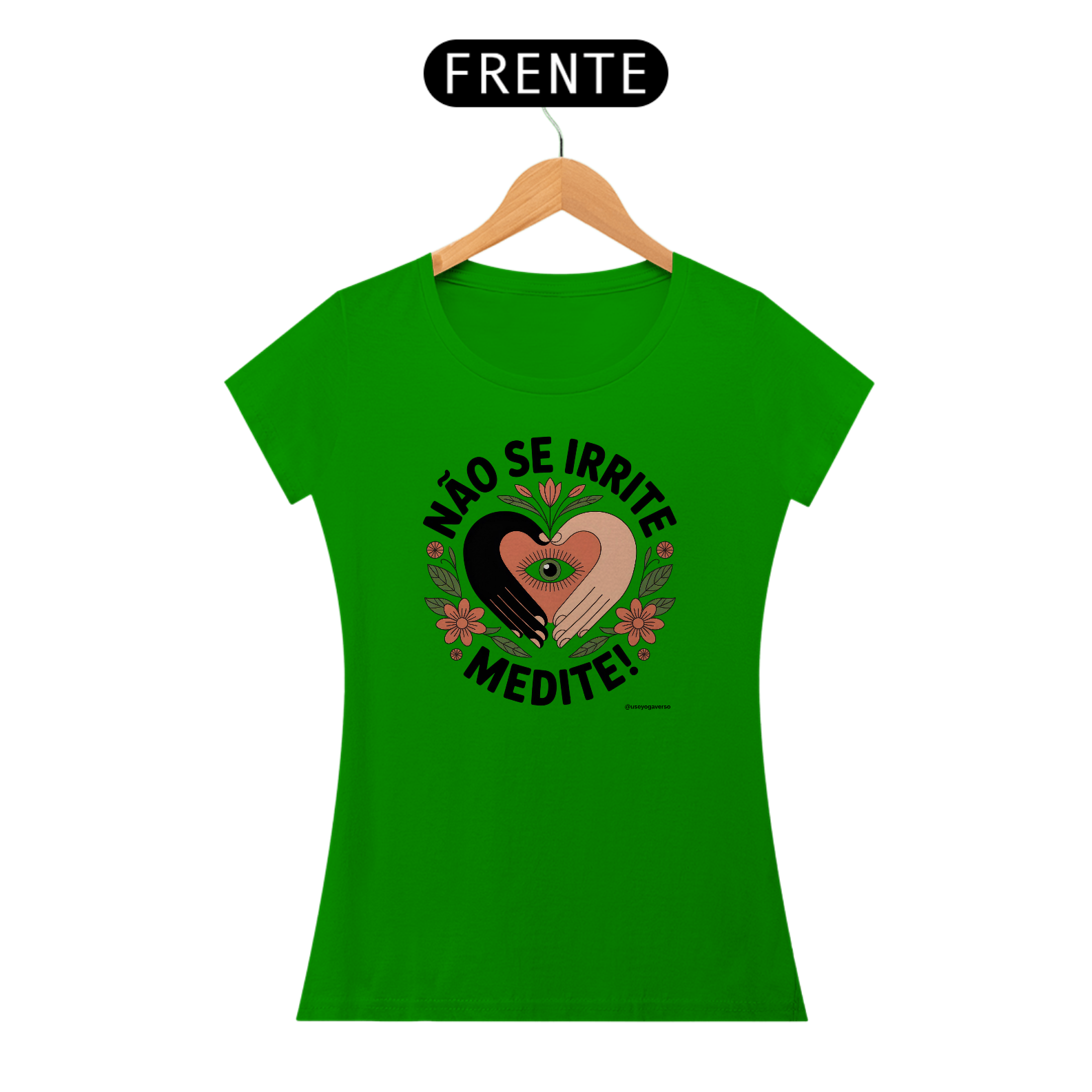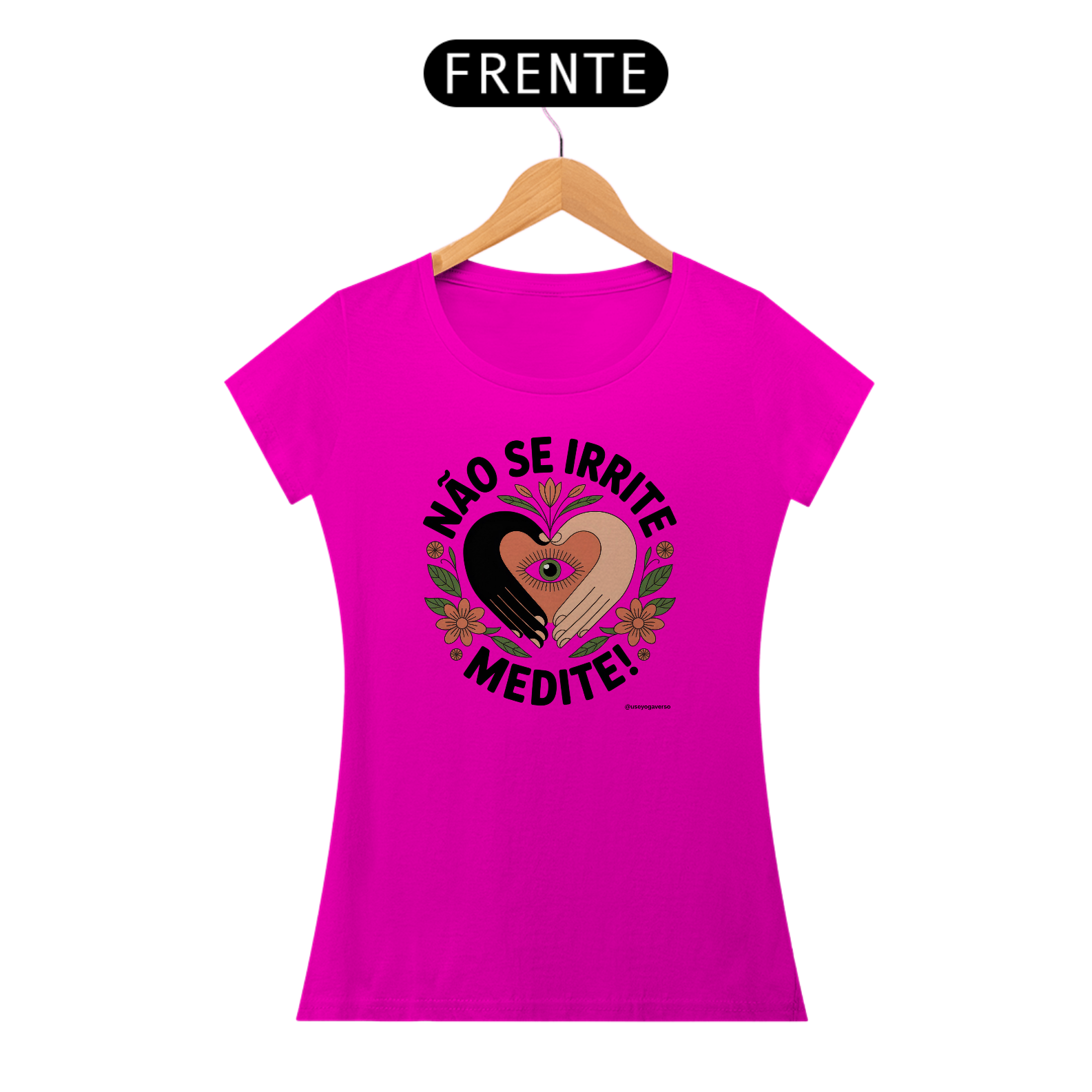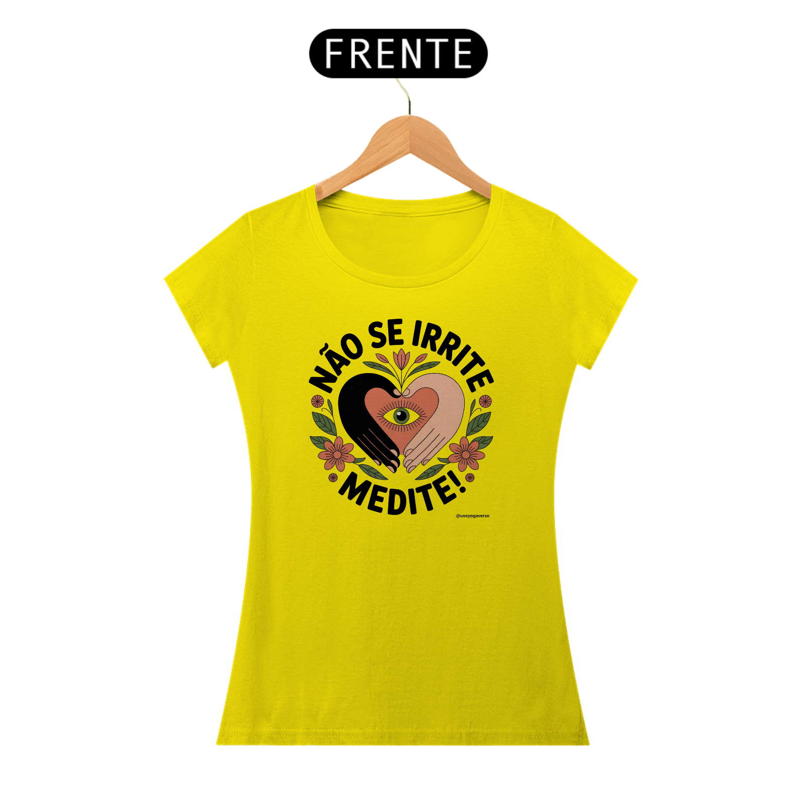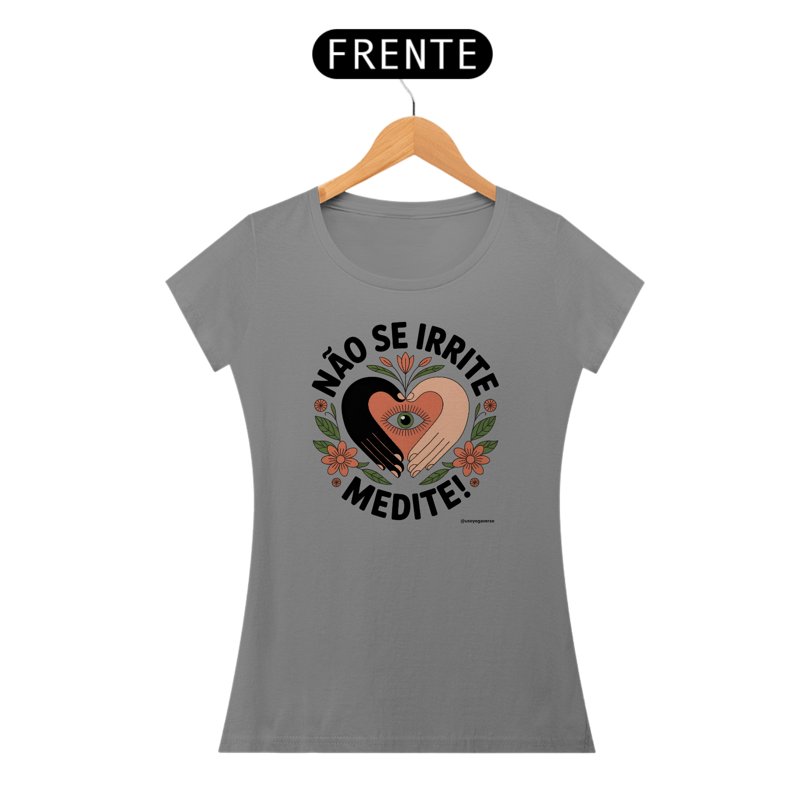 A estampa exclusiva revela um coração radiante em tons calorosos de rosa e laranja, envolvido por mãos amorosas em posição de mudra, simbolizando o cuidado gentil que oferecemos ao nosso centro emocional através da prática meditativa. Flores delicadas e elementos cósmicos dançam ao redor, representando o jardim que floresce quando cultivamos a tranquilidade interior.