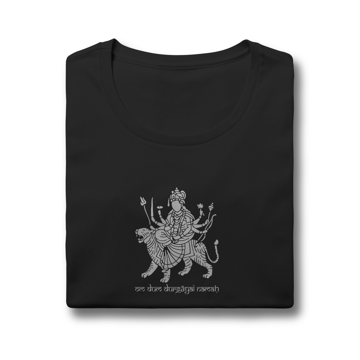 A camiseta de Yoga Durga Navaratri Shakti Baby Long une estilo, espiritualidade e tradição. Inspirada no festival de Navaratri, que celebra a vitória da luz sobre a escuridão, a estampa traz a Deusa Durga acompanhada do mantra “Om Dum Durgayai Namah”, invocando proteção e coragem.