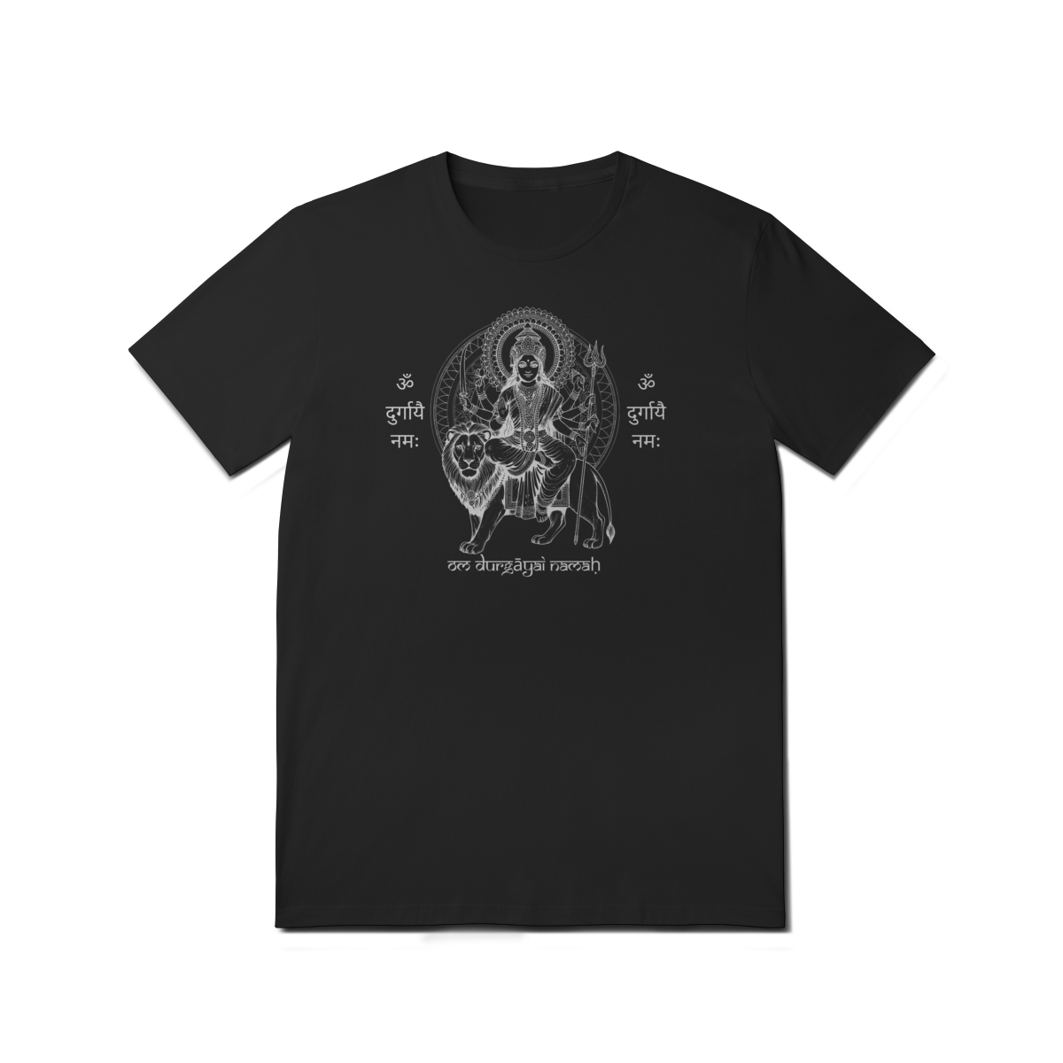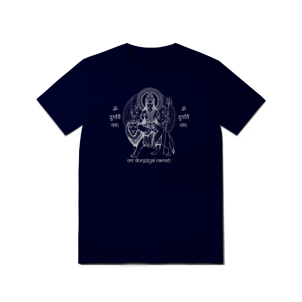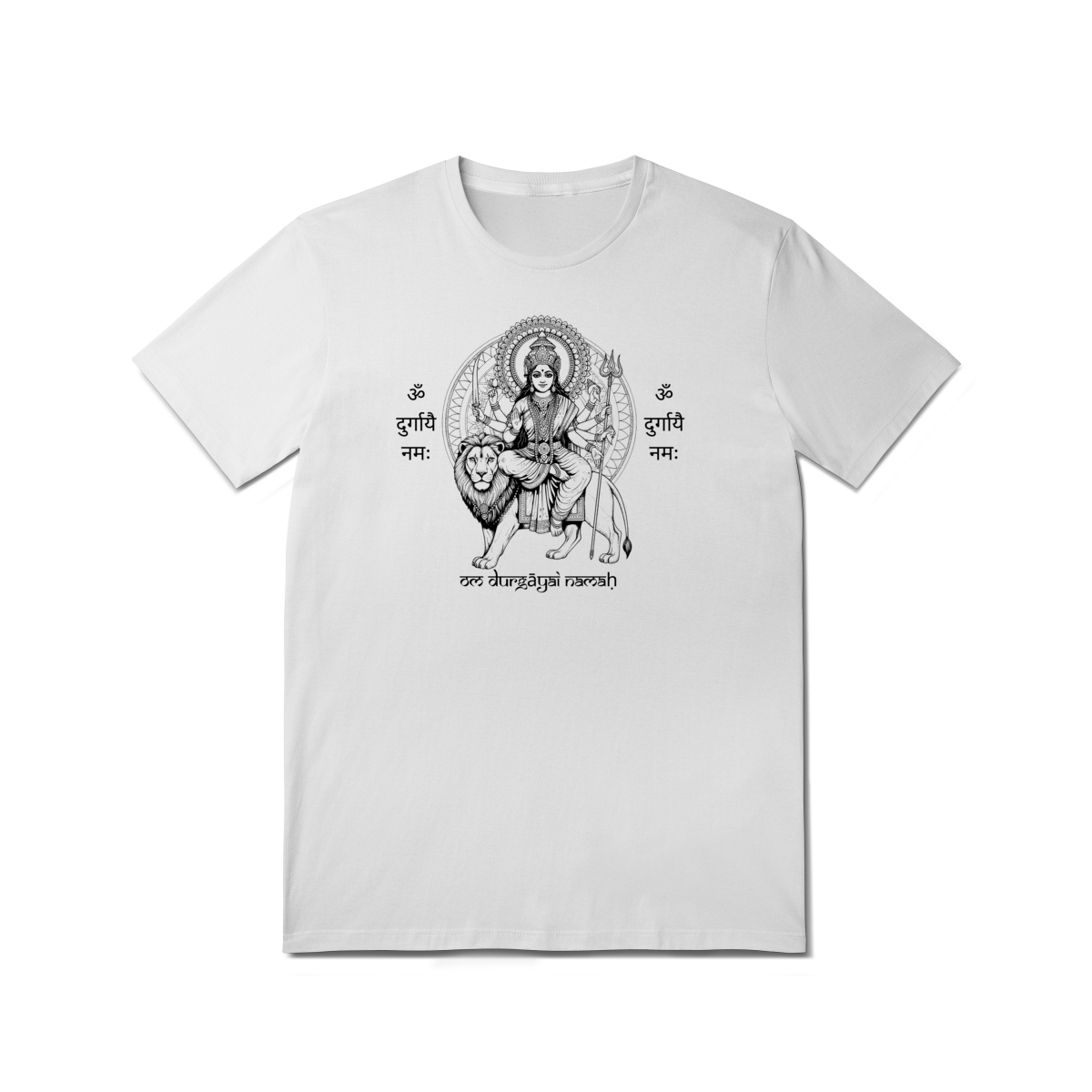 A camiseta de Yoga Durga Shakti Tradicional celebra o arquétipo da guerreira divina. Sua estampa traz a imagem de Durga, símbolo de proteção e vitória sobre a negatividade, junto ao mantra “Om Durgayai Namah”, um chamado de reverência à energia da Mãe Divina.