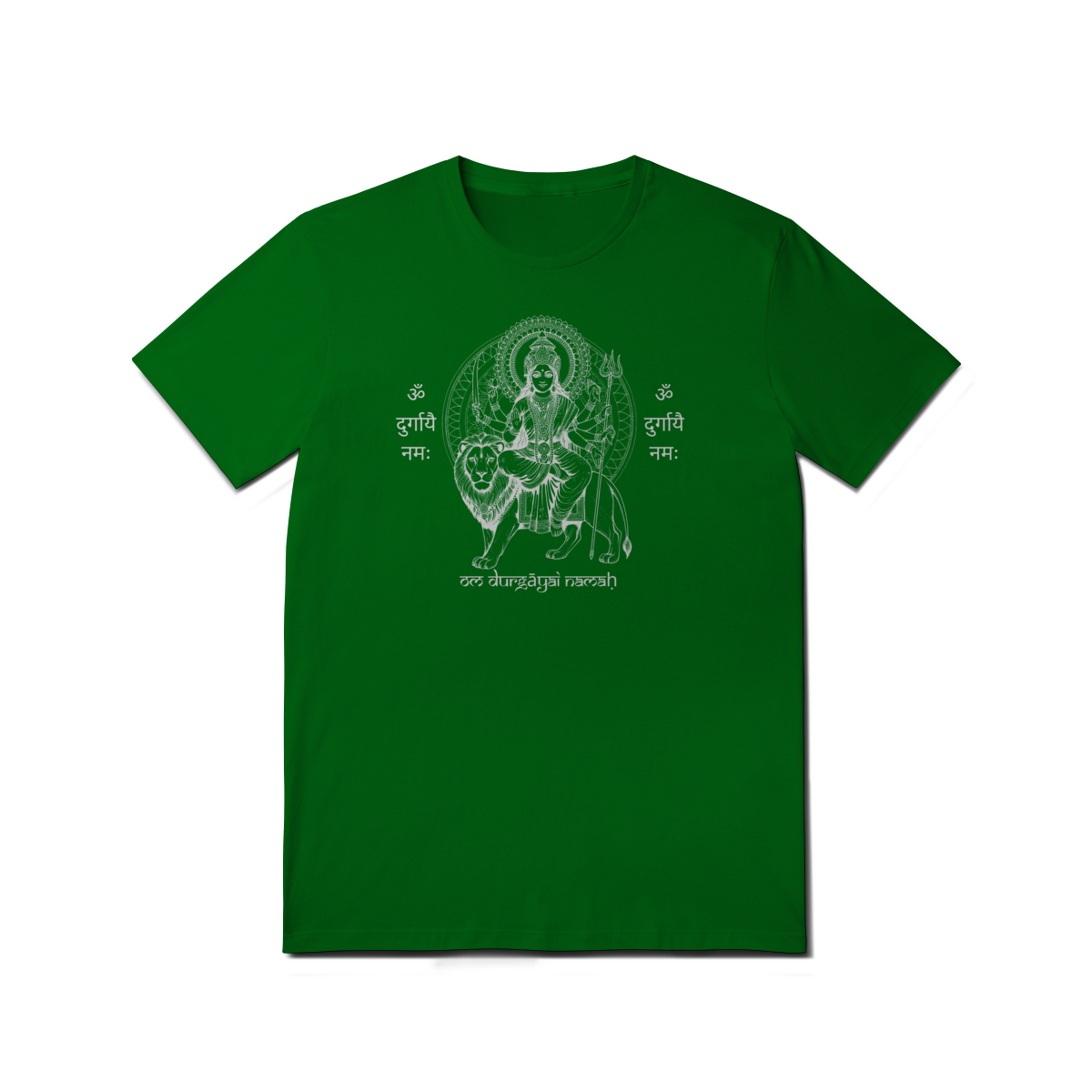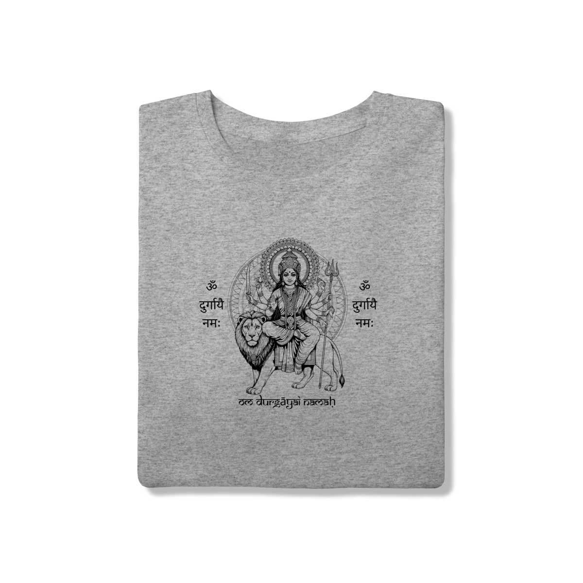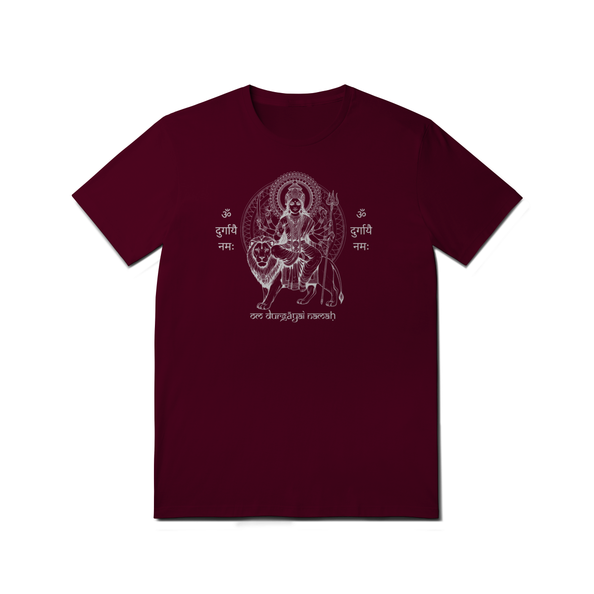 A camiseta de Yoga Durga Shakti Tradicional celebra o arquétipo da guerreira divina. Sua estampa traz a imagem de Durga, símbolo de proteção e vitória sobre a negatividade, junto ao mantra “Om Durgayai Namah”, um chamado de reverência à energia da Mãe Divina.