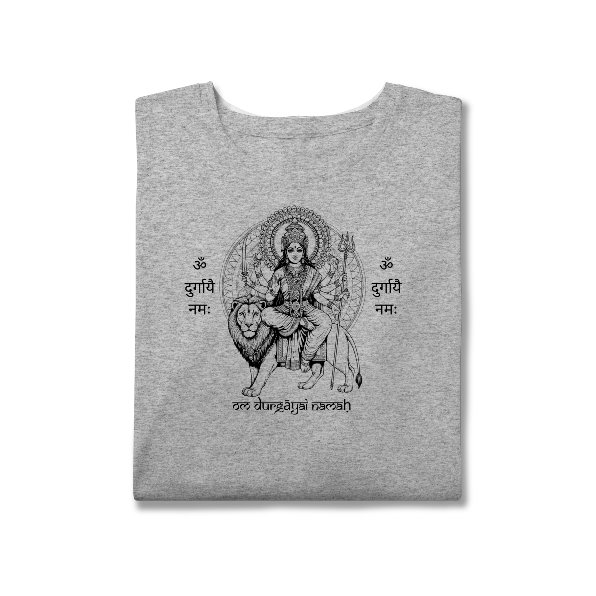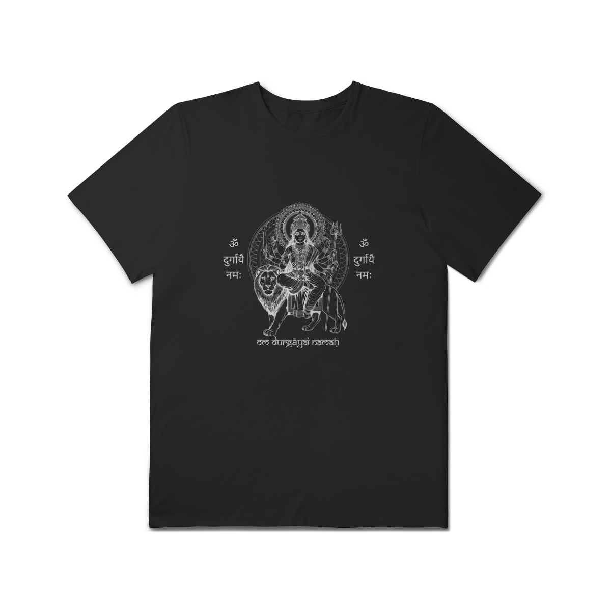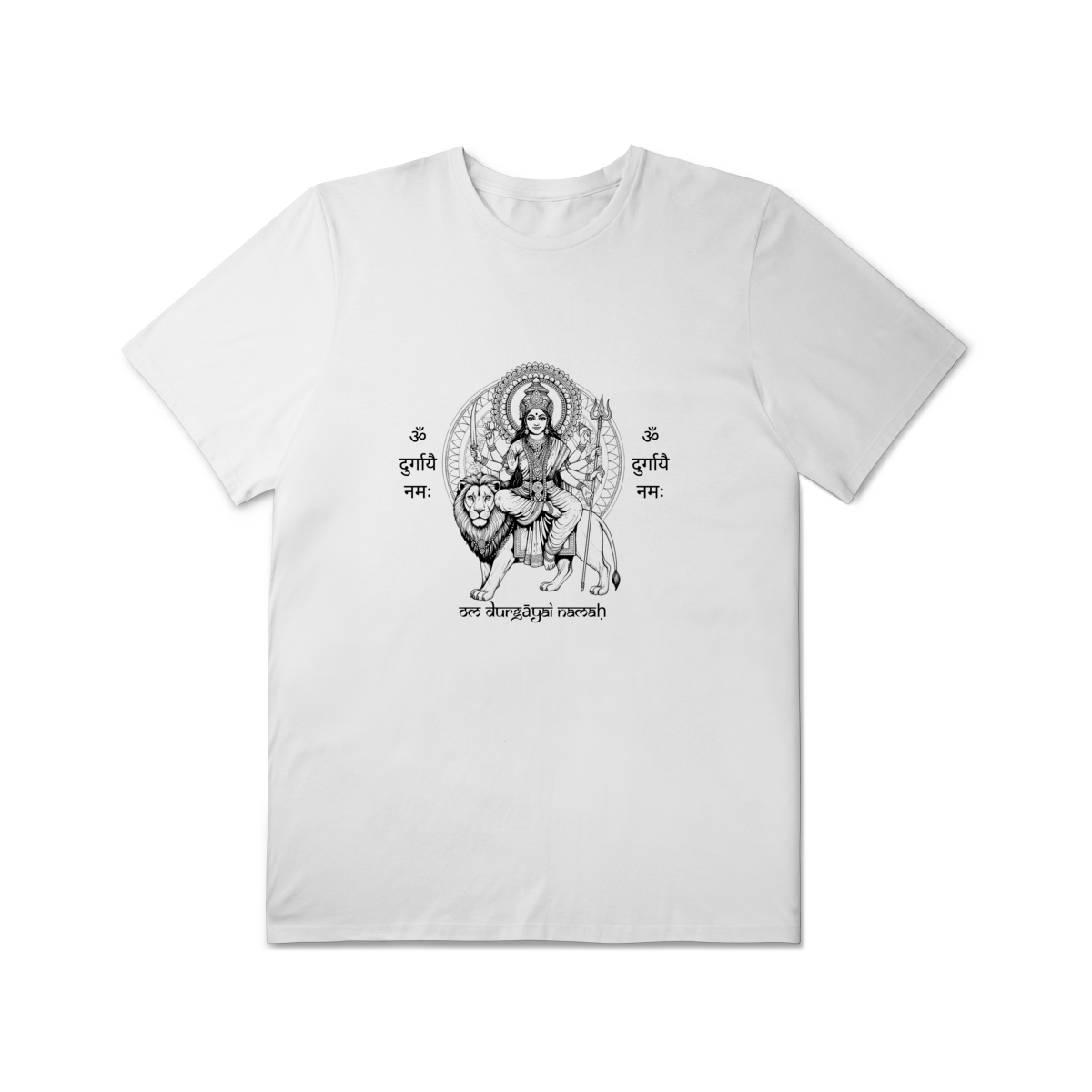 A camiseta de Yoga Durga Shakti Plus Size honra a força e a beleza em todos os corpos. A estampa traz a Deusa Durga, arquétipo da coragem e do poder feminino, acompanhada do mantra “Om Durgayai Namah”, que invoca proteção e confiança interior.