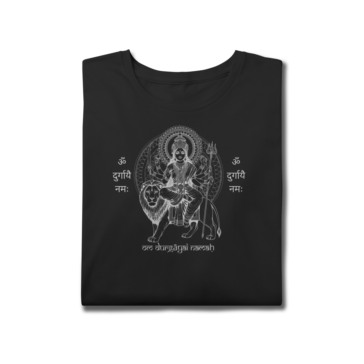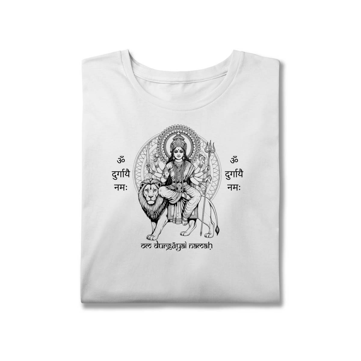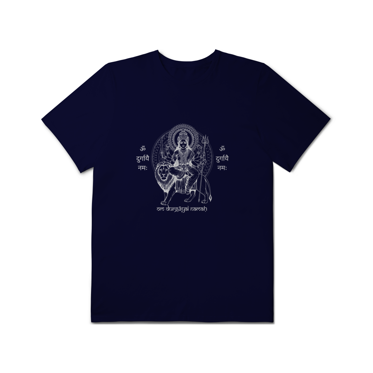 A camiseta de Yoga Durga Shakti Plus Size honra a força e a beleza em todos os corpos. A estampa traz a Deusa Durga, arquétipo da coragem e do poder feminino, acompanhada do mantra “Om Durgayai Namah”, que invoca proteção e confiança interior.