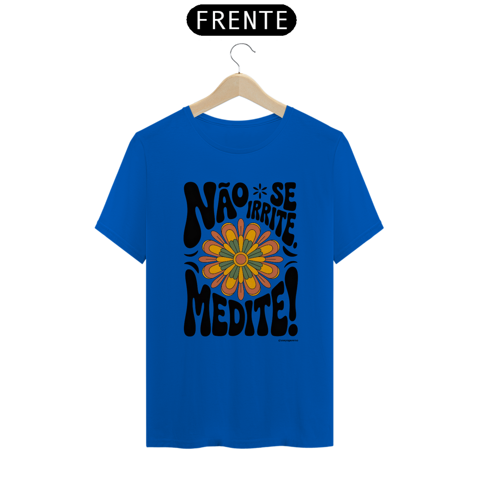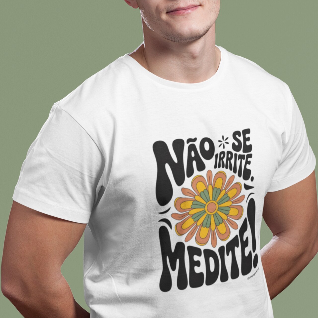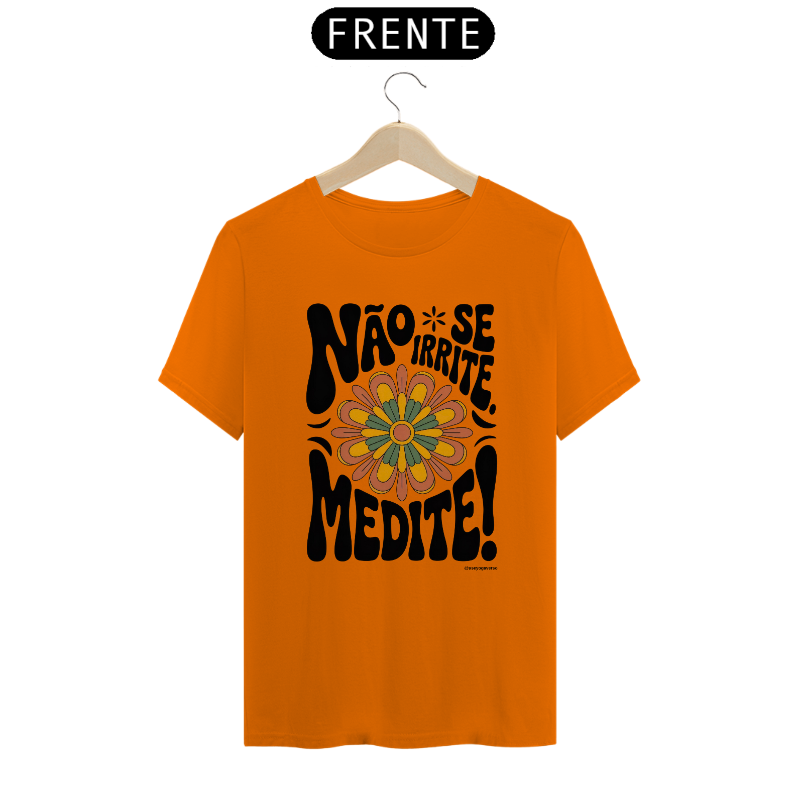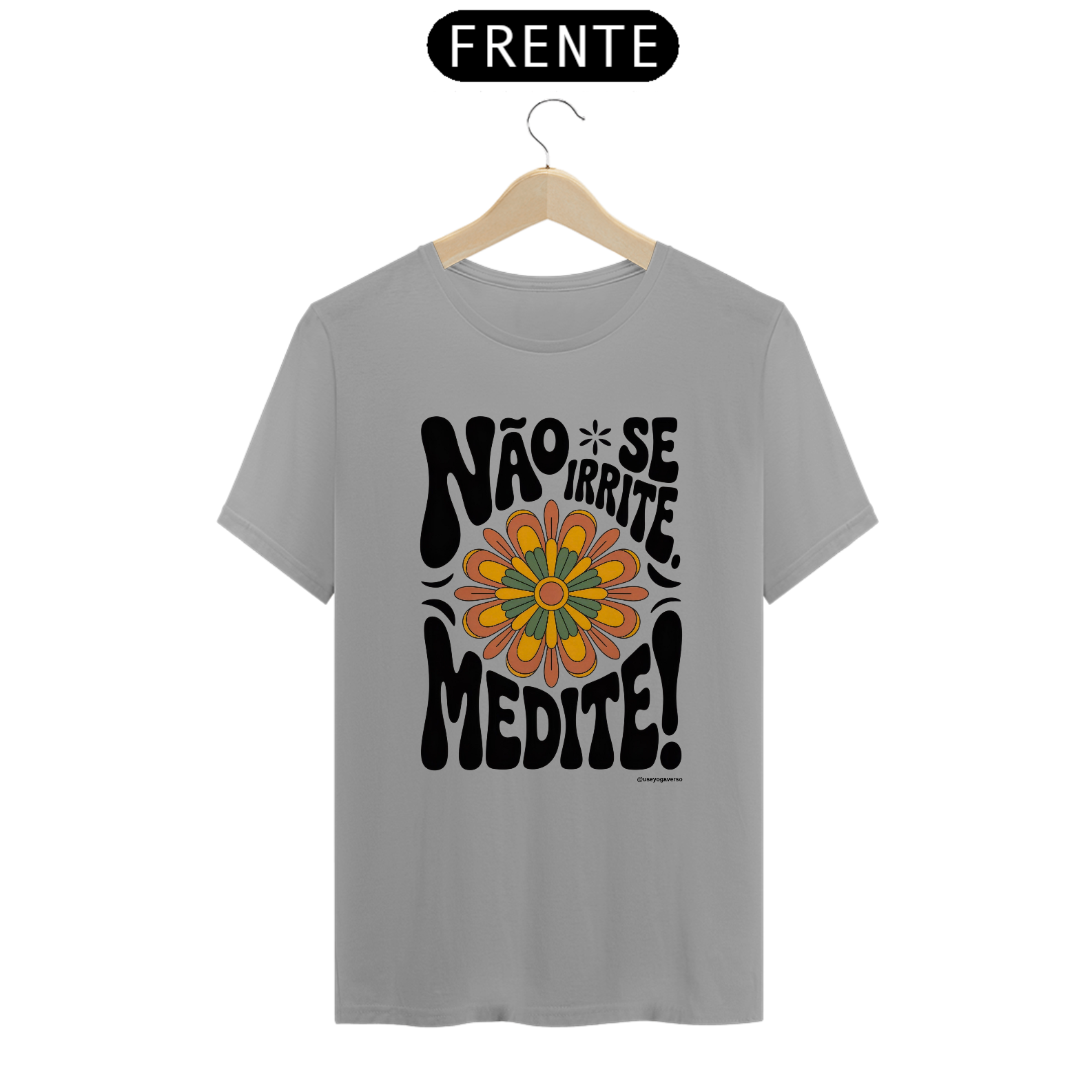 Desperte sua consciência e eleve seu visual com a Camiseta Meditação Floral Retrô da Coleção Medite. Esta peça exclusiva da Yogaverso traz a poderosa mensagem "Não se irrite. Medite!" envolta por um design floral inspirado na estética retrô dos anos 70, combinando estilo e propósito em uma única peça.