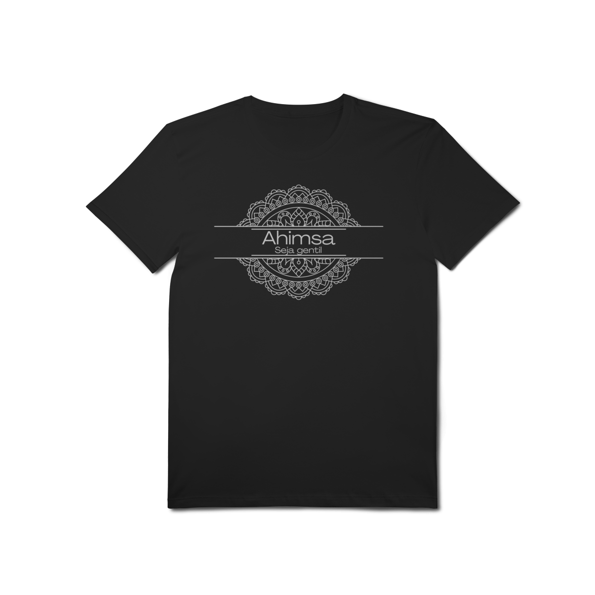 O corte tradicional proporciona liberdade de movimento e versatilidade, combinando facilmente com looks casuais ou espirituais. A estampa Ahimsa – Seja Gentil, em mandala simbólica, representa o equilíbrio entre força e compaixão — uma energia que transcende o tecido e se manifesta na atitude.