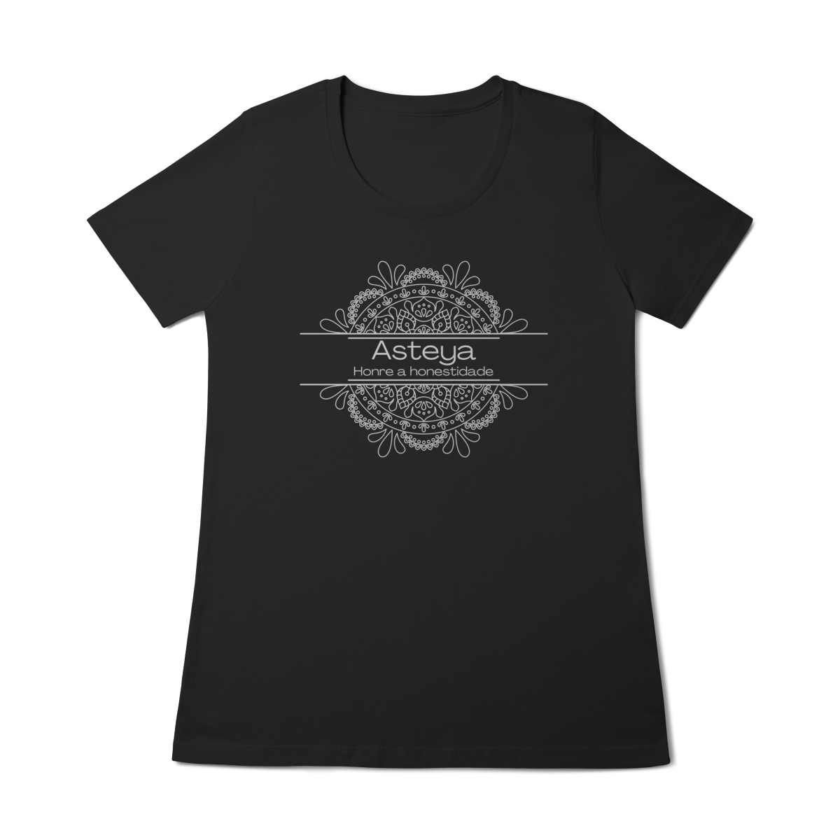 Camiseta Yoga Babylong Asteya – Viva com Integridade é um lembrete de harmonia e respeito em movimento. Inspirada em Asteya, o terceiro Yama do Yoga, esta estampa traduz o princípio da integridade e da confiança na abundância da vida. Vestir Asteya é afirmar que nada nos falta quando vivemos em coerência com nossos valores.