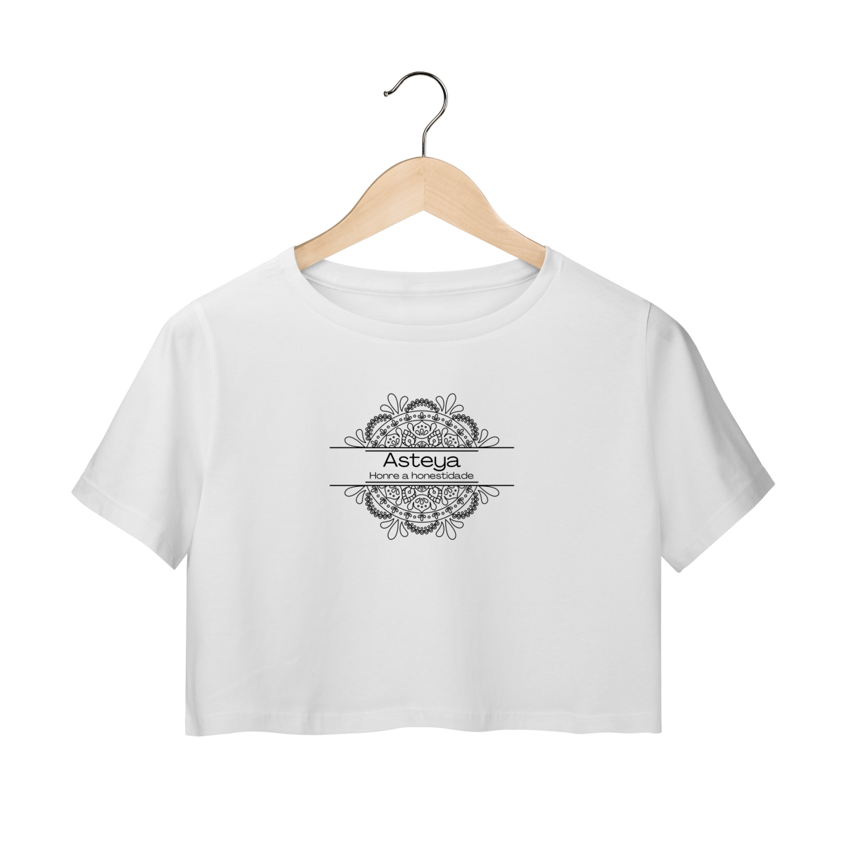 Camiseta Yoga Cropped Asteya – Viva com Integridade reflete o equilíbrio entre autenticidade e simplicidade. Inspirada no Yama Asteya, ela nos lembra que a verdadeira abundância nasce do contentamento e do respeito pelos ciclos da vida. Vestir esta estampa é cultivar presença, gratidão e leveza.