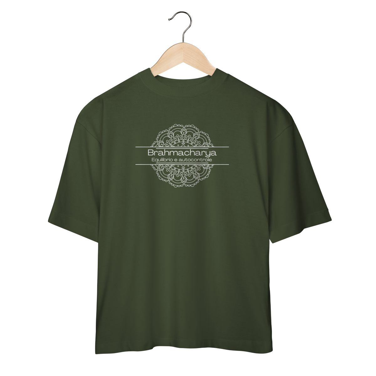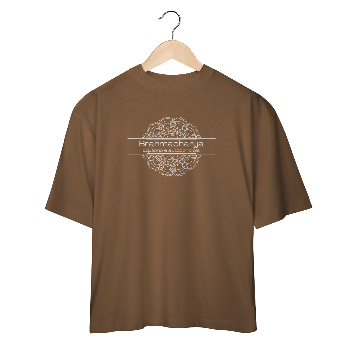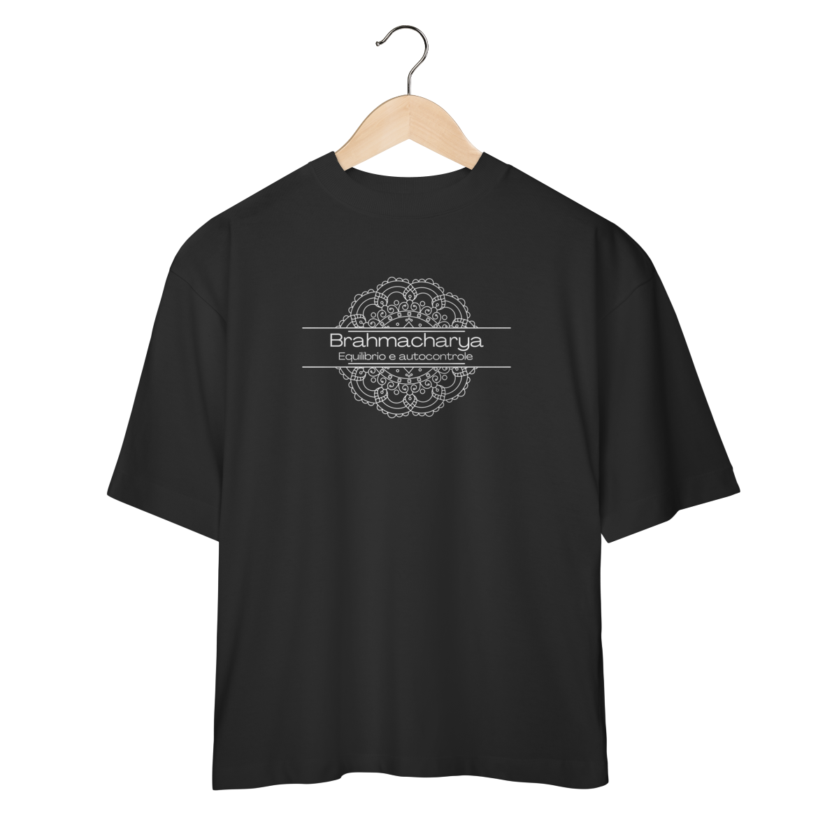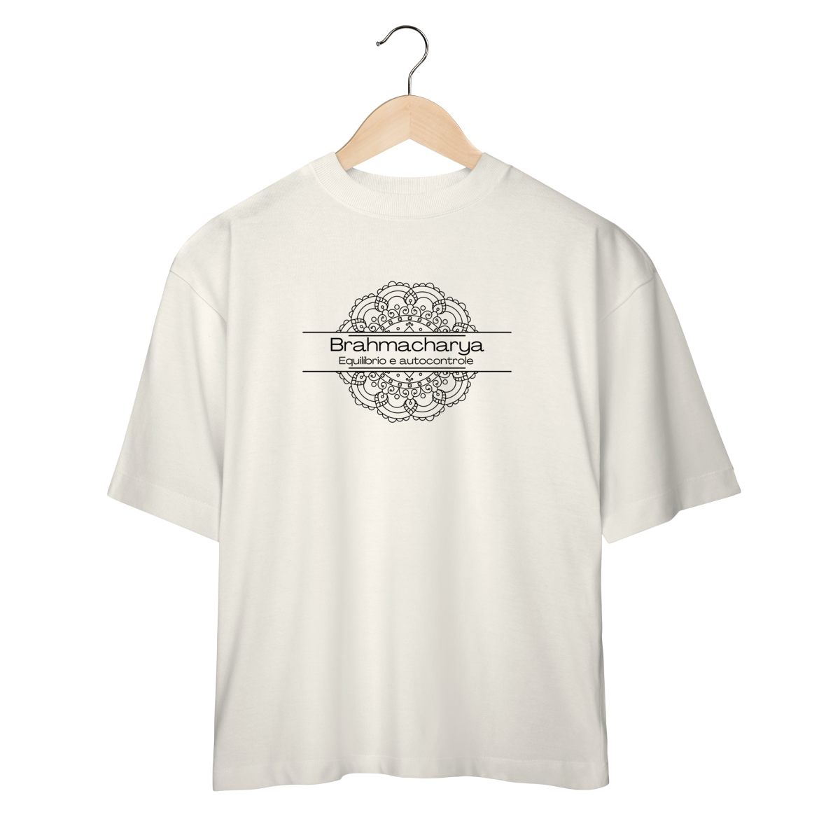 Camiseta Yoga Oversized Brahmacharya, Foque no Essencial é um manifesto de simplicidade e foco. Brahmacharya, o Yama que trata do uso sábio da energia, inspira esta peça a lembrar que direcionar atenção ao essencial é um caminho de paz e clareza. Vestir esta estampa é reafirmar a escolha por uma vida com menos dispersão e mais intenção.