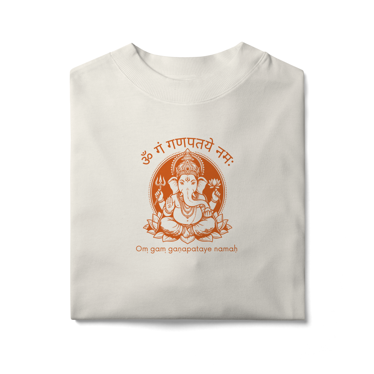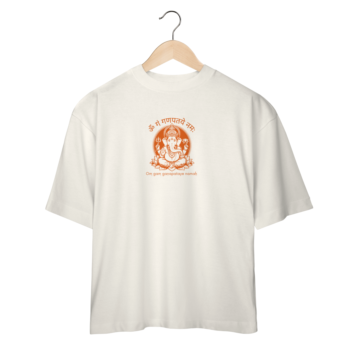 A estampa apresenta Ganesha em uma composição equilibrada e impactante, acompanhada do mantra “Om Gam Ganapataye Namah”, conhecido por fortalecer a intenção, atrair proteção e favorecer novos ciclos. É uma camiseta ideal para práticas de yoga, meditação ou para composições urbanas com identidade espiritual.