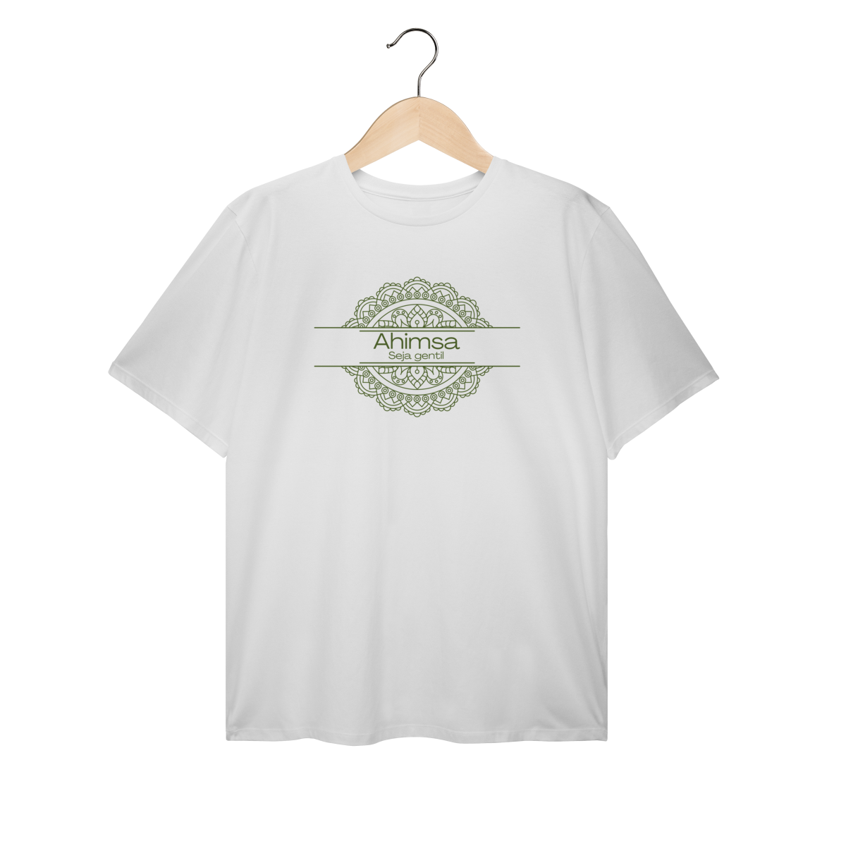 Camiseta Yoga Plus Size Ahimsa – Seja Gentil foi criada para abraçar todos os corpos com conforto, propósito e representatividade. Feita em 100% algodão, com meia malha penteada e costura reforçada, proporciona toque leve, respirável e resistente.