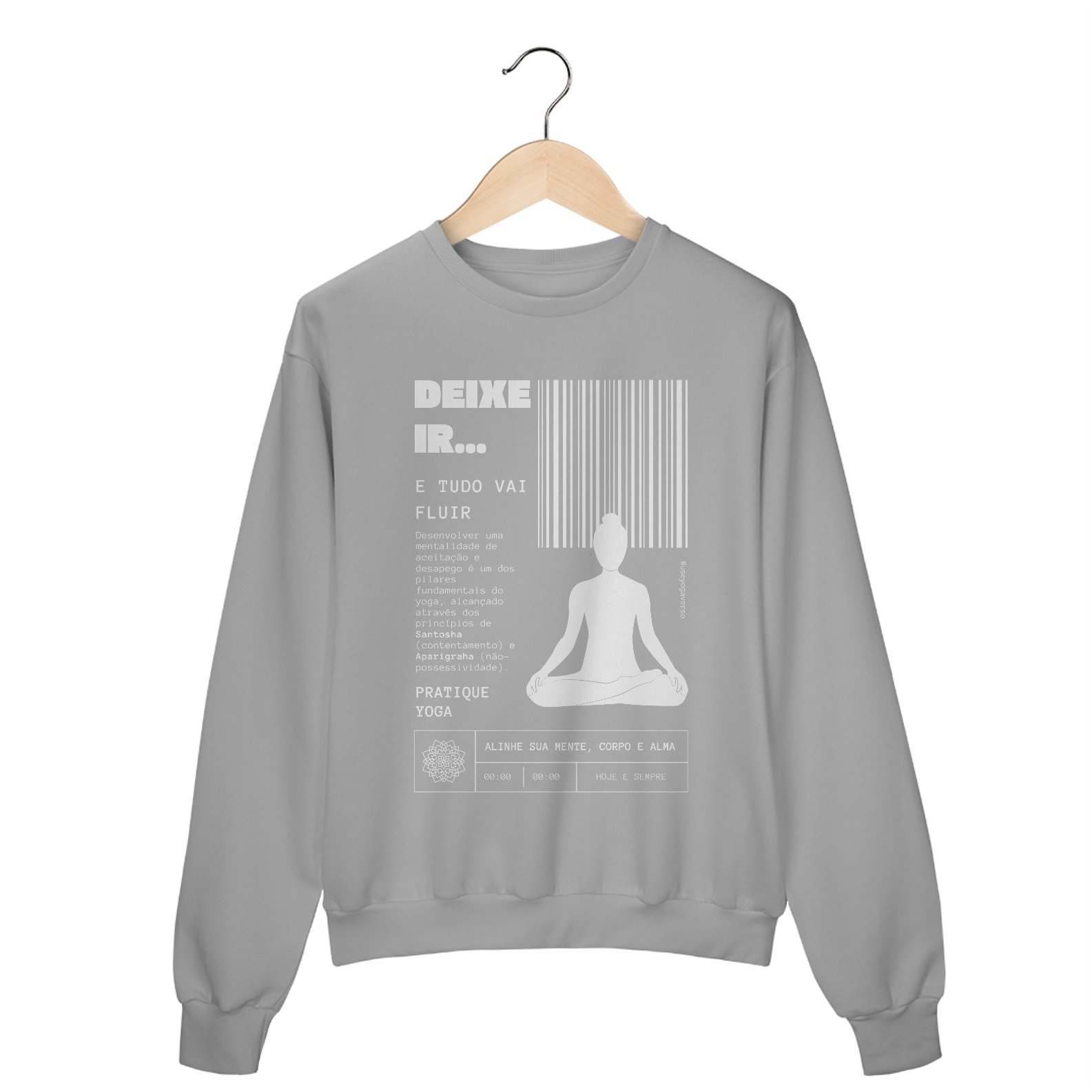 Produzido com materiais de alta qualidade e com atenção ao conforto, o moletom é perfeito para suas práticas de yoga, meditação, ou para levar a filosofia yogue ao dia a dia. Além de vestir consciência, você carrega consigo uma mensagem cheia de significado e inspiração.