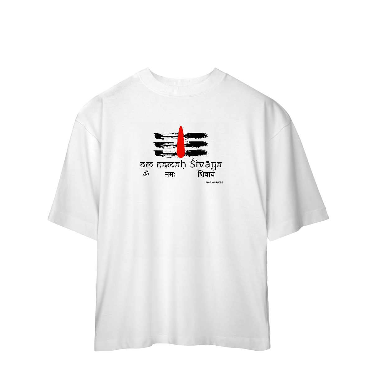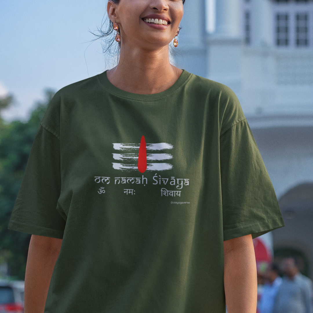 Mergulhe na essência espiritual do mantra "Om Namah Shivaia" com a estampa Essência de Shiva. Este mantra poderoso homenageia Shiva, o destruidor de ilusões e transformador do universo, personificando a renovação e a evolução espiritual. A estampa inclui uma ilustração do Tilak de Shiva, símbolo de proteção e terceiro olho da sabedoria.
