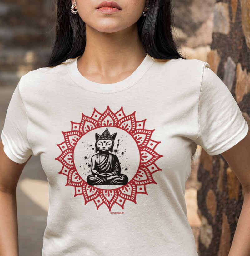 Essa estampa é um lembrete divertido de que, tal como nossos amigos felinos, podemos encontrar nossa própria quietude interior com a prática da meditação.