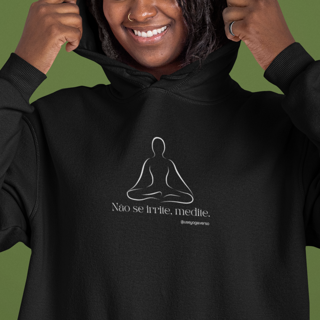 Confeccionada com a mais alta qualidade, nosso moletom "Não se Irrite. Medite!" oferece conforto e durabilidade excepcionais: